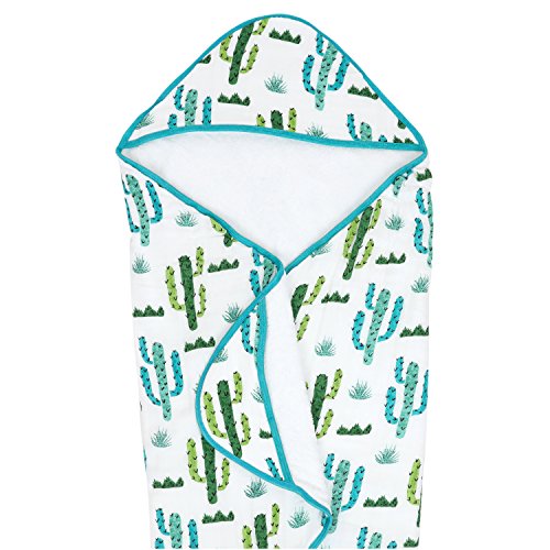 100% Organic Muslin Hooded Bath Towel by ADDISON BELLE – Perfect For Baby & Toddler – Extra Big 33 inches x 33 inches – Premium Terry Cloth Interior – Best Baby Shower Gift (Cactus)