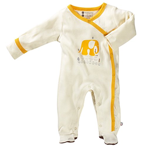 Baby Soy Illustrated Organic Footie, Elephant (3-6M/Neutral Cream)