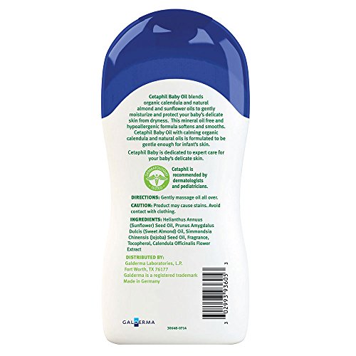 Cetaphil Baby Moisturizing Oil with Organic Calendula, Sweet Almond Oil & Sunflower Oil, 13.5 Ounce