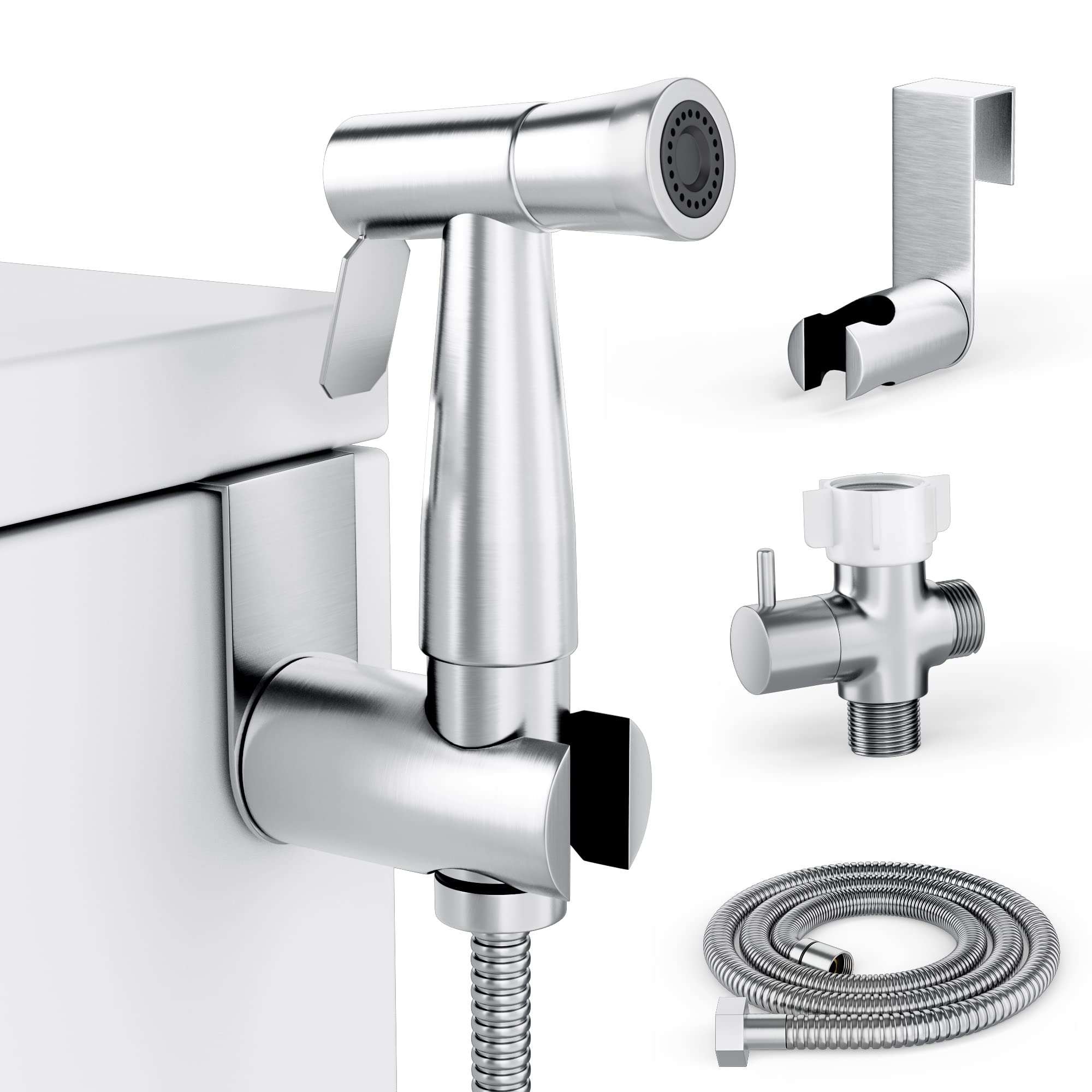 This is an attachment that goes on your toilet, similar to or the same as a bidet attachment, that you can use to spray off cloth diapers over the toilet. We aren’t picky on the brand. We have seen these sold used on places like Facebook Marketplace.