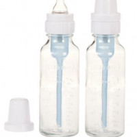 Dr. Brown’s bottle features a patented two-piece internal vent system that works unlike any other bottle design. The vent system fully vents our bottle for vacuum free feeding, which we call positive-pressure flow, similar to breastfeeding. As the baby feeds, air is channeled from the nipple collar through the vent system, bypassing the breast milk or formula, to the back of the bottle. Air never mixes with the breast milk or formula which minimizes oxidation and helps maintain essential nutrients like vitamins C, A and E. Babies feed more comfortably because the vent system allows them to nurse without fighting the negative effects of a vacuum or the discomfort of ingesting air bubbles. This helps to reduce feeding problems like colic, spit-up, burping, and gas. The breast milk or formula flows freely, without nipple collapse. Includes two 8 ounce glass bottles with two level one nipples, two 2 piece internal vents and one nipple cleaning brush. BPA Free.