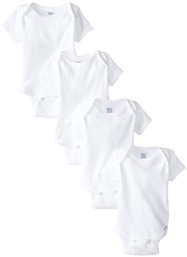 Gerber white organic onesie brand one piece underwear are an essential in baby’s wardrobe, great to use as a layering piece under your favorite outfits to keep baby’s tummy extra warm, made of 100-percent organic cotton fibers, naturally grown and naturally soft, the lap shoulder neckline provides ease of dressing, hems are double stitched to keep smooth after excessive washings and a snap closure conveniently positioned for ease of changing baby’s diaper, 4 pack white available in sizes newborn, 0-3 and 3-6 months, machine wash and dry and essential for every new mom and great for gift giving