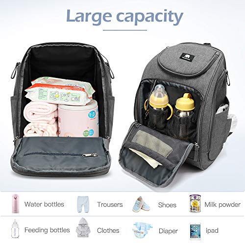 LARGE DIAPER BAG – Practical baby bag has large capacity main compartment, separate storage pockets including insulated pockets, wet clothes pocket. Men diaper backpack with internal and external pockets is enough to hold most baby essentials