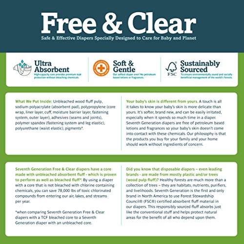 Seventh Generation Baby Diapers, Free and Clear for Sensitive Skin, Original Unprinted, Newborn, 144 Count