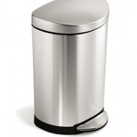 The simplehuman semi-round step can is available in this compact size for smaller space; perfect for a bathroom or office. Flat side of the can fits against the wall. Stainless steel construction and removable inner bucket.