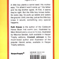 When a little boy plants a carrot seed, everyone tells him it won’t grow. But when you are very young, there are some things that you just know, and the little boy knows that one day a carrot will come up. So he waters his seed, and pulls the weeds, and he waits…